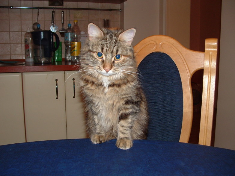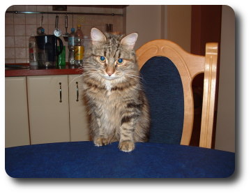 kocie rasy jest bezproblemowe podejście do wody, czyli kąpanie kotki po prostu sprawia autentyczną przyjemność. Ma swój charakter, nie można jej do niczego zmusić na siłe. Jest raczej spokojna, chociaż ma w sobie "to coś" co świadczy o drzemiącej w niej sile natury. Ponieważ jest bardzo zrównoważona prawie nigdy nie wykazuje tej siły. Ale zdarzały się przypadki gdy upolowała sobie mysz albo sikorkę. Bardziej szczegółowy opis rasy można przeczytać na podstronie "Opis rasy". |