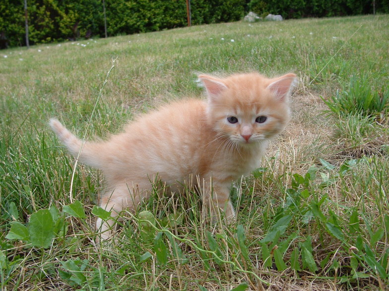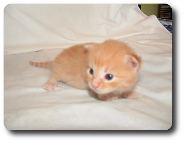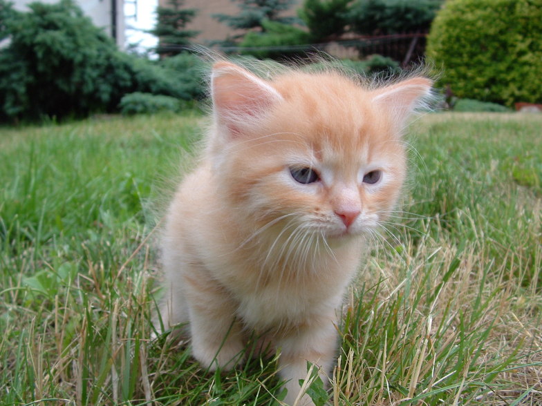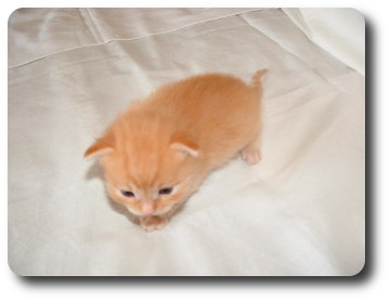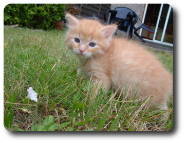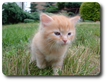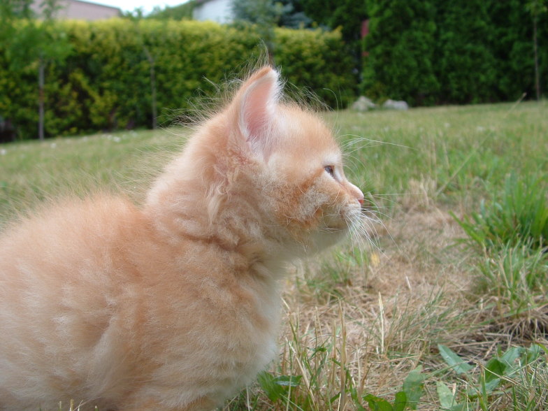 Ten kociak to "bystrzak" jakich mało. Kiedy cała reszta się bawi ten patrzy na mamę i się uczy. Zawsze pierwszy do miski i ostatni odchodzi, jako pierwszy zaczął korzystać z kuwety. Bardzo miły rudzielec :)