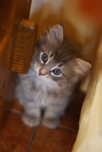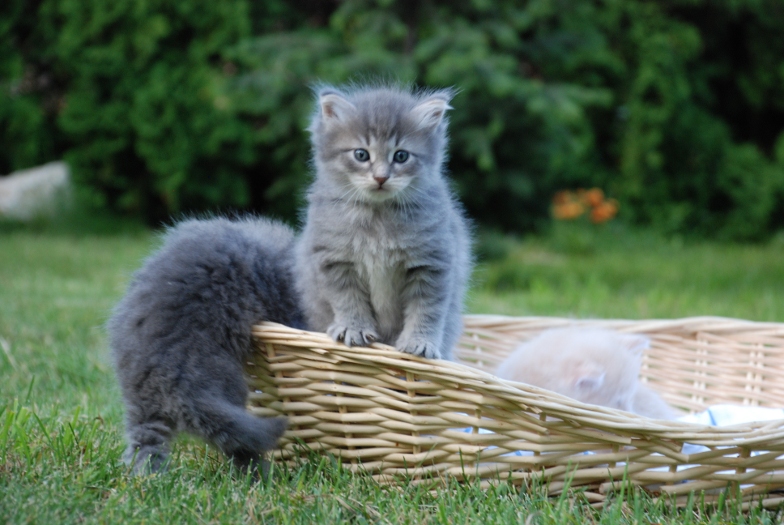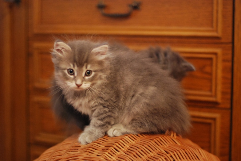 Ten kotek jest bardzo zrównoważony, do wszystkiego podchodzi z umiarem. Oprócz jedzenia chyba :) Zawsze pierwszy do miski i ostatni odchodzi. Dlatego jest największy i najbardziej "solidny" ze wszystkich. Prawdopodobnie będzie "w tatusia", czyli co najmniej 5 kg. A to oznacza duże ciepłe mruczące futerko którę bardzo chętnie zagrzeje oziabłą zmęczoną osobę gdy za oknem zimno, mokro i generalnie nieciekawie. No i co jeszcze można by było dodać do tego opisu. Chyba natura popełniła błąd, jak się okazuje po dłuższym czasie. Jest bardziej przytulny i ufny wobec ludzi niż nie jedna kotka. Jest po prostu słodki i kochany. Potrafi tak zajrzeć w oczy, że nie ma siły żeby nie wziąć go na ręce i nie pogłaskać. :)